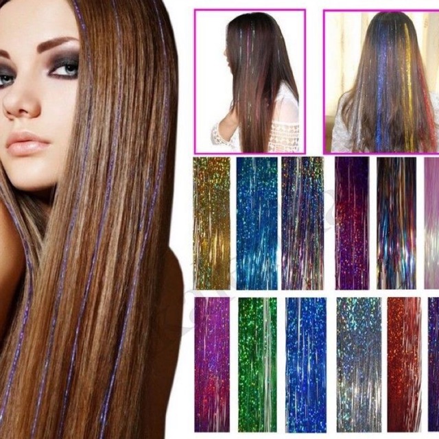 100 Strands Holographic Sparkle Hair Tinsel Extensions Dazzles 44 15 Colours